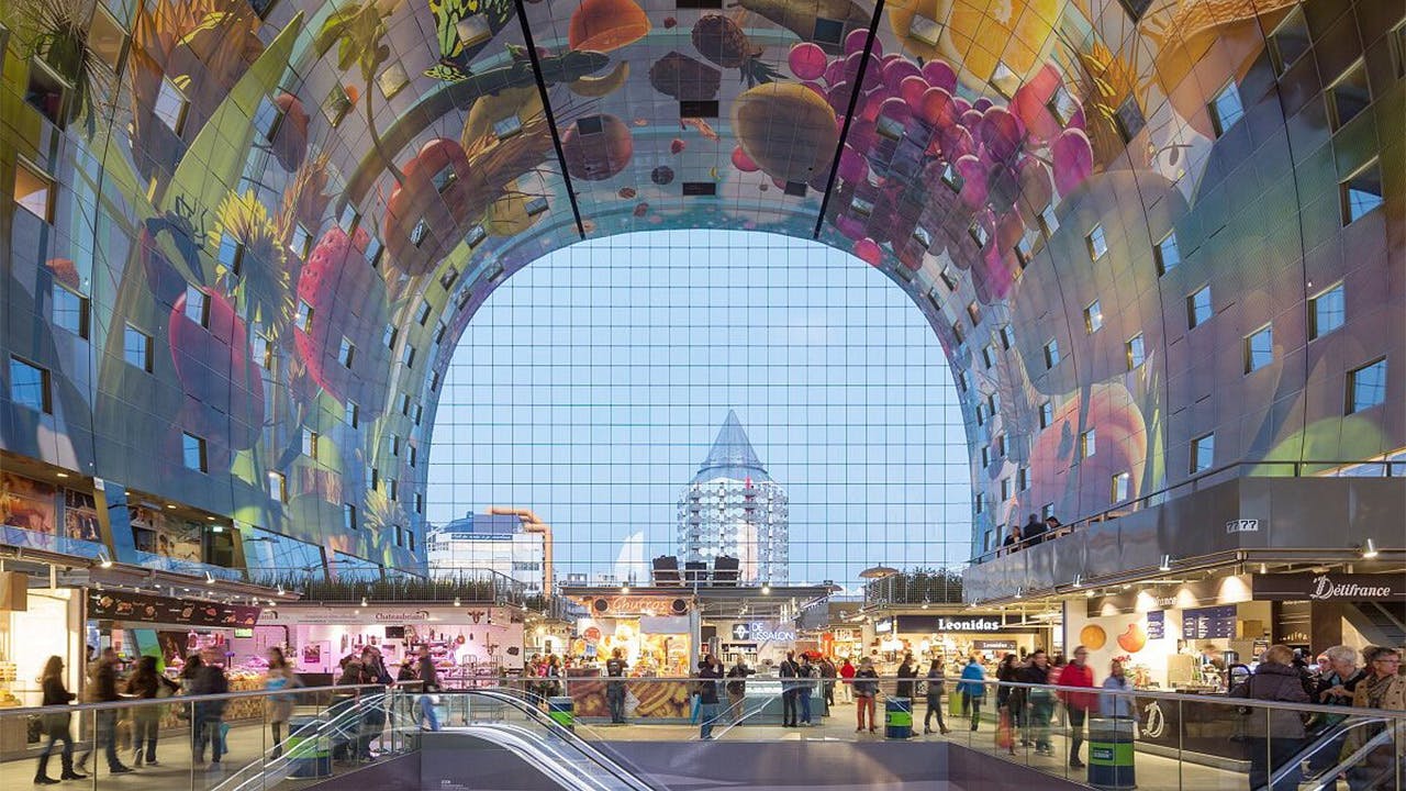 The Markthal in Rotterdam is a farmer's market and food hall wrapped in one. The market is located in a stunning glass and steel building, and it features over 100 stalls selling fresh produce, meats, cheeses, and more. In addition to being a great place to find fresh food, the Markthal is also a popular spot for dining and entertainment.