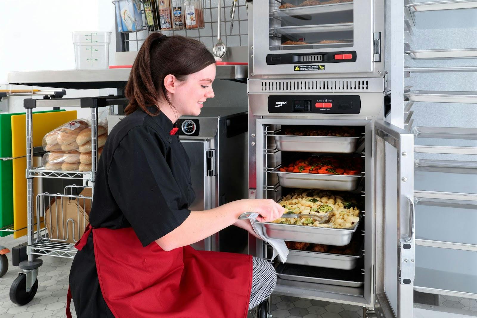 These cabinets are widely used in school kitchens for pre-prepared dishes or pre-cooked meals delivered ahead of time. They’re valuable equipment, especially for large cafeterias that manage meal prepping.